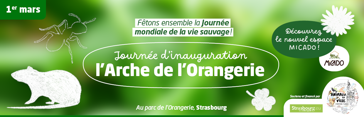 La Ville de Strasbourg vous convie à l’inauguration de l’Arche de l’Orangerie, un lieu unique dédié à la découverte du comportement animal et à la biodiversité urbaine. Au cœur de ce projet, la Maison d’Initiation au Comportement Animal (MICADO) et sa nouvelle salle pédagogique seront présentées au public lors d’une cérémonie protocolaire, suivie de