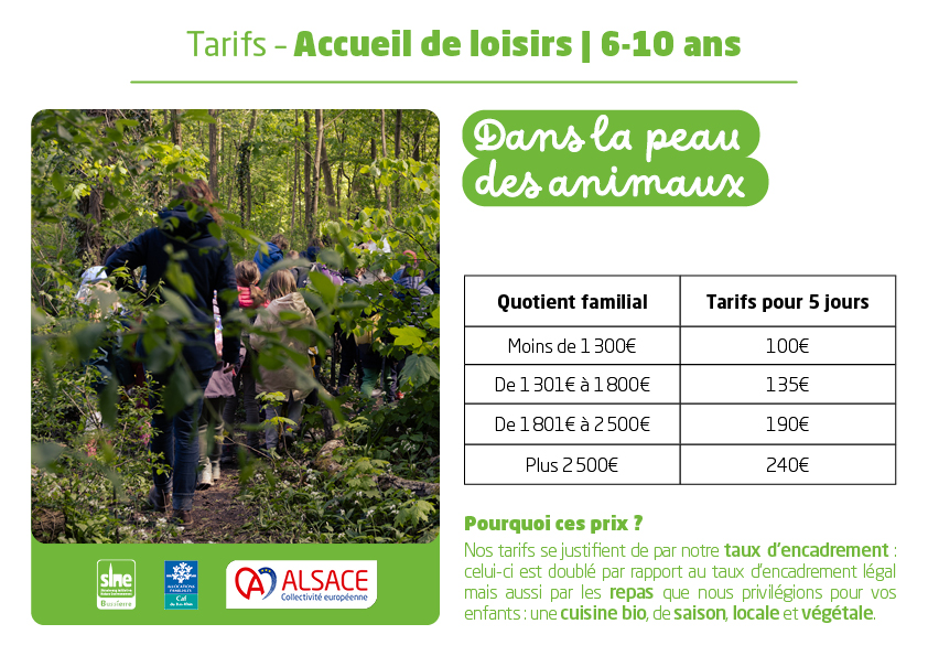 Nos accueils de loisirs proposent aux enfants d’évoluer dans la nature, dans un rythme qui alterne entre activités guidées et temps libres, cette pédagogie tend à valoriser à la fois l’initiative des enfants et l’accompagnement des ’animateur·ices. Certaines activités variant approches et techniques sont préparées par l’équipe d’animation : cuisine, bricolage (musique verte, tressage, calligraphie, impressions naturelles, construction de cabanes…), sorties nature, pêche dans la mare pédagogique et bien d’autres s’appuyant sur les espaces naturels avoisinant Bussierre. En parallèle, d’autres moments sont pensés pour laisser une large place à l’imagination et aux envies des enfants. Le programme de la semaine se construit avec eux et prend vie au travers de jeux libres ou de projets spontanés, accompagnés par des animateur·ices qui veillent au bon déroulement, et à la réalisation des projets des enfants pendant ces différents temps.