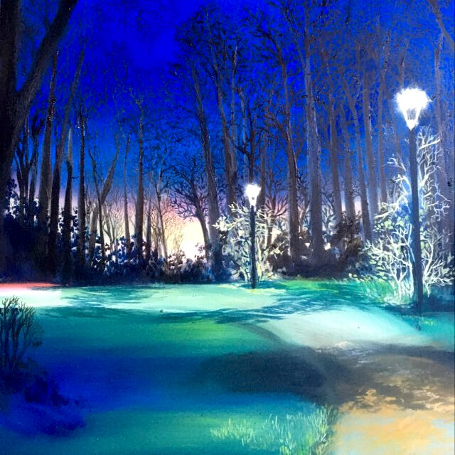 Fruit d’une résidence dans laquelle dialoguent la peinture et la photographie, l’exposition s’articule autour de la circulation des femmes dans le parc de Pourtalès aux heures de la tombée du jour, au moment où la lumière s’adoucit et devient incertaine, l’heure bleue.